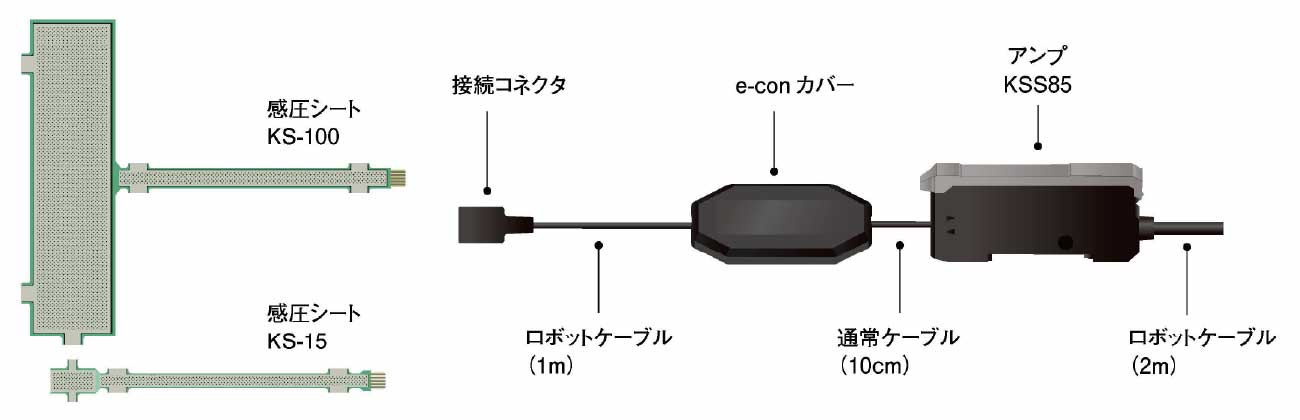 感圧シートセンサ(アンプ:KSS85、感圧シート:KS-100・KS-15)の仕様です。