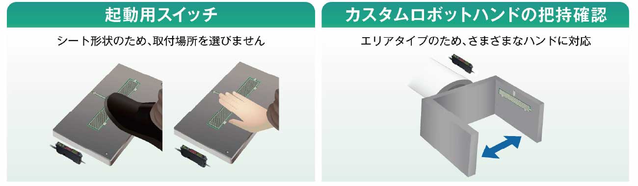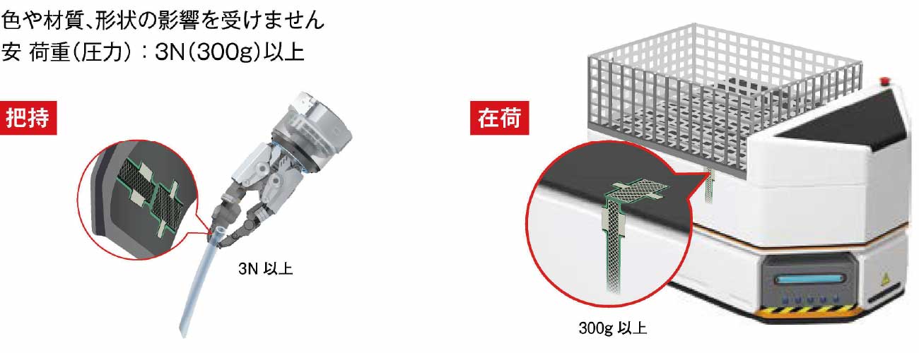 過重や圧力により反応する感圧シートを採用。ワークの色や材質、形状の影響を受けません。