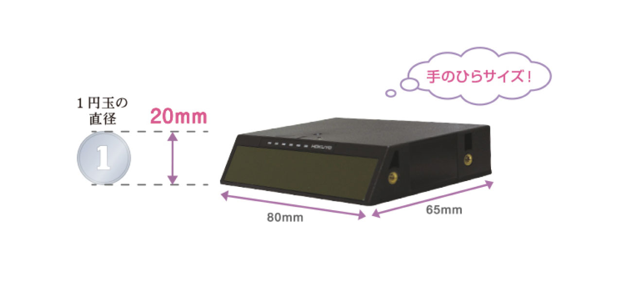 本体サイズは80mm×65mm×20mm、質量約100g(ケーブル除く)。フォークリフトやAGV/AMR、ドア周辺設備など、限られたスペースへの組込みが可能です。