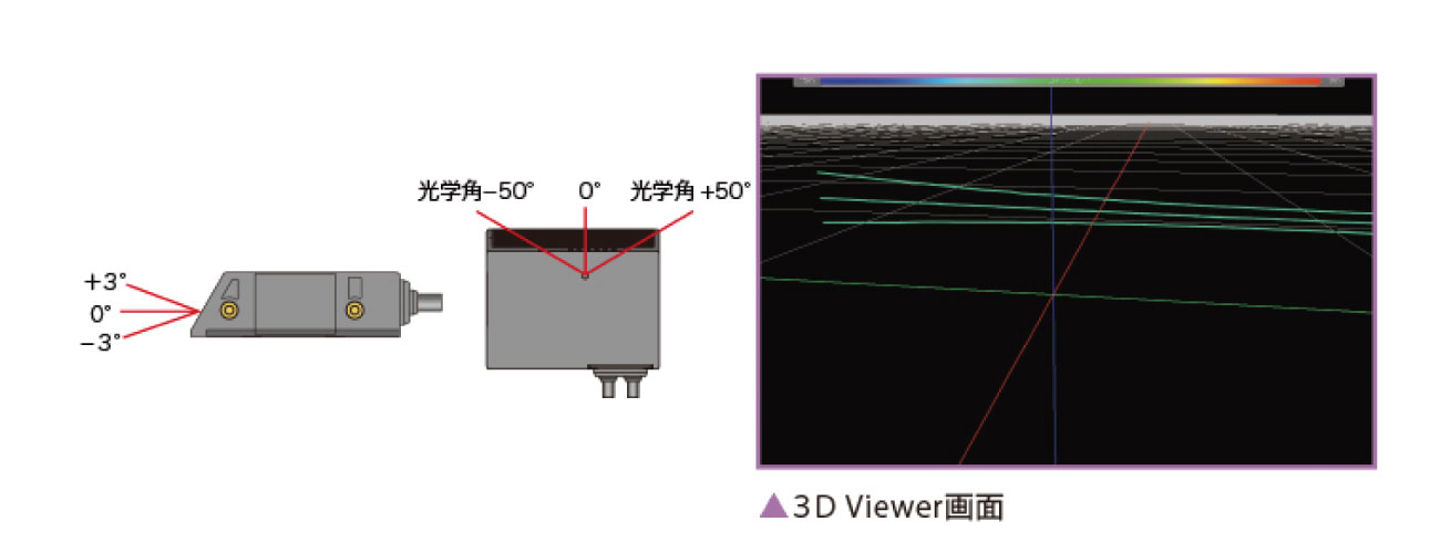 水平100°×垂直6°の3レイヤ式マルチレイヤ3Dスキャンにより、垂直方向の変化も正確に検出。パレット穴検知や段差検知、侵入検知など多用途に対応します。